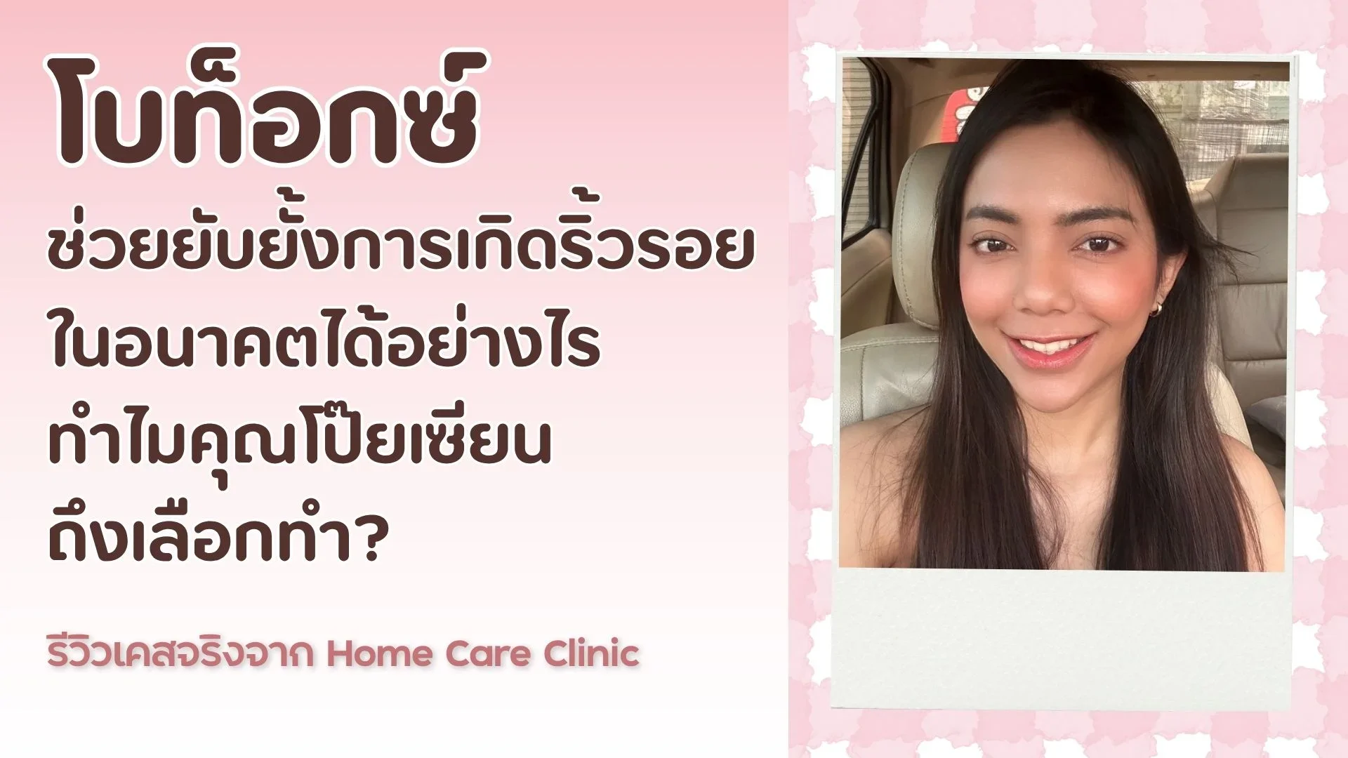 วันนี้เราจึงขอเเชร์ประสบการณ์ ผู้ใช้บริการจริงจาก Home Care Clinic ที่เริ่มเห็นริ้วเล็ก ๆ บนใบหน้า โดยป้องกันการเกิดรอยพับในอนาคตด้วยโบท็อกซ์
